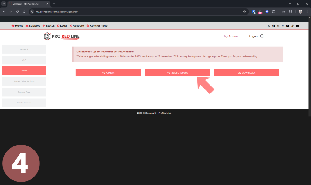 - From the available options, click “My Subscriptions”.