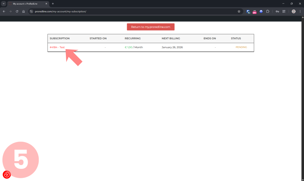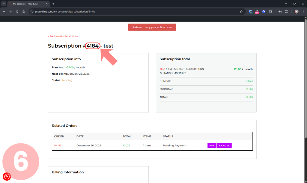 “Subscription #1234 – Product Name”