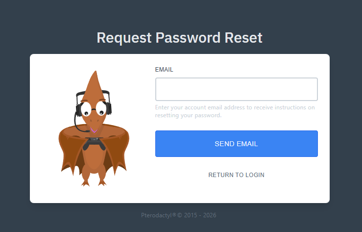 - Enter the email for which you would like to reset the Game Panel password.