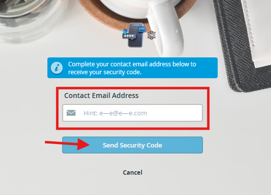 - Enter the security code you’ve received in your contact email address inbox.