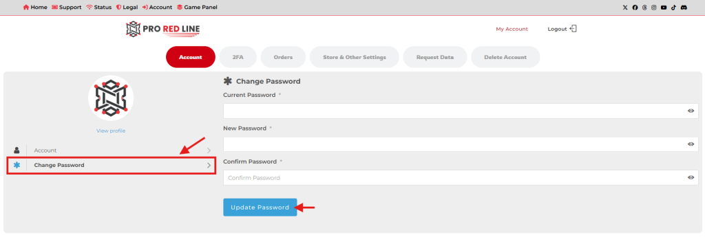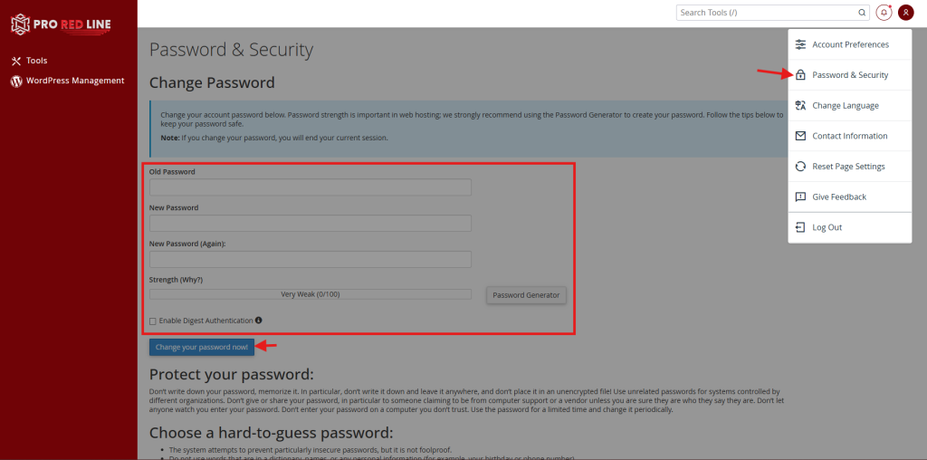 Changing your My ProRedLine account password is quite easy. Follow these steps: